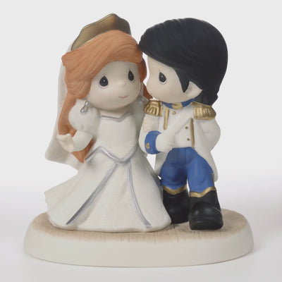 - Inspired by the happy ending of Disney’s The Little Mermaid, this touching figurine shows the couple in their wedding attire, proving that love can overcome so much.