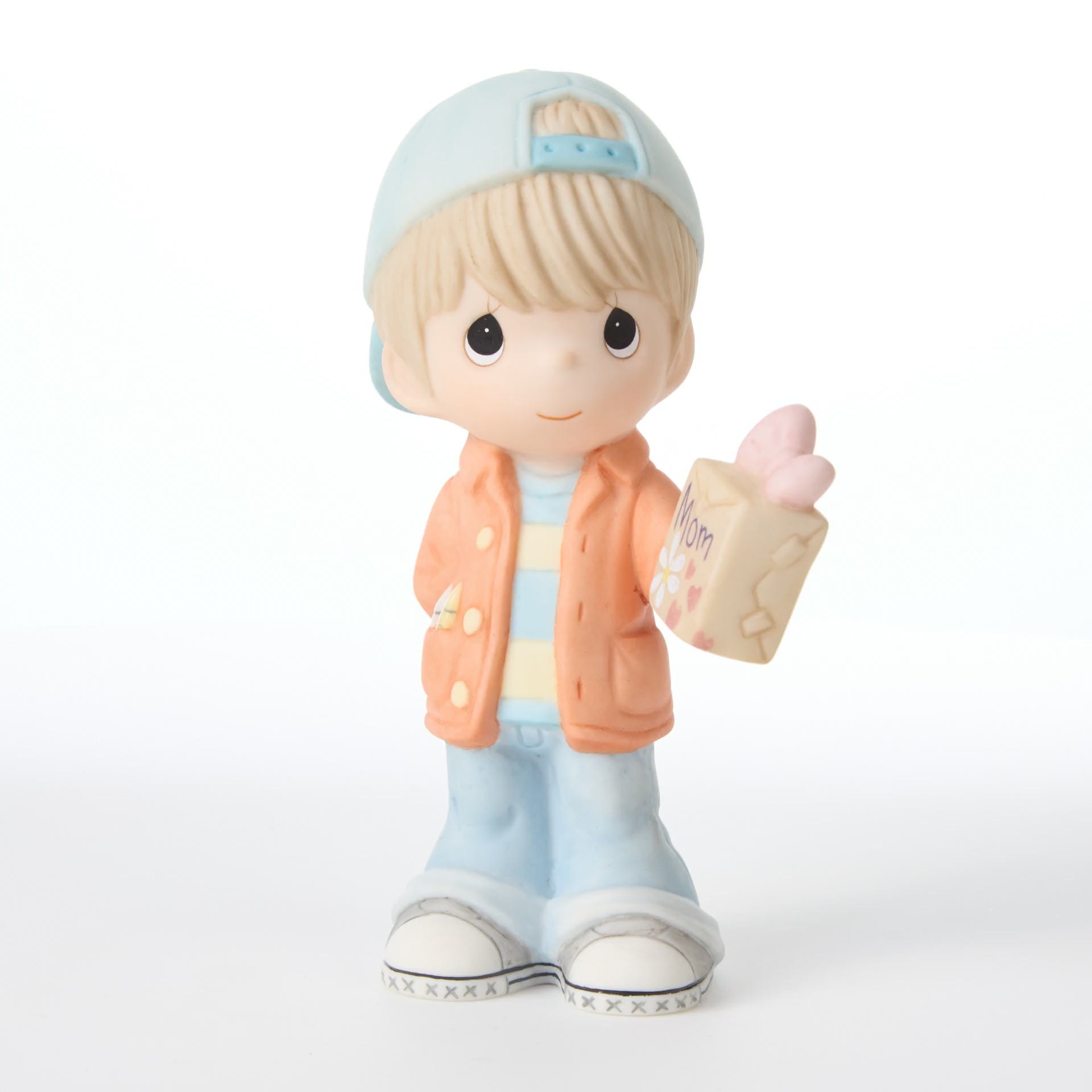 - This figurine was created to celebrate the pure and simple love a young son has for his mother, featuring a boy in a backward baseball cap holding a gift just for her.